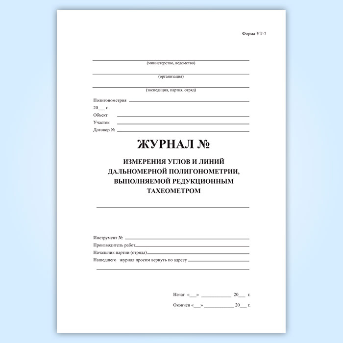 Журнал измерения углов и дальномерной полигонометрии, выполняемой редукционным тахеометром (форма УТ-7) в Альметьевске купить