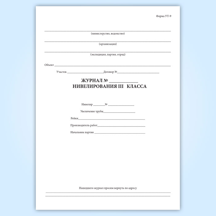 Журнал нивелирования III класса (форма УТ-9) в Альметьевске купить
