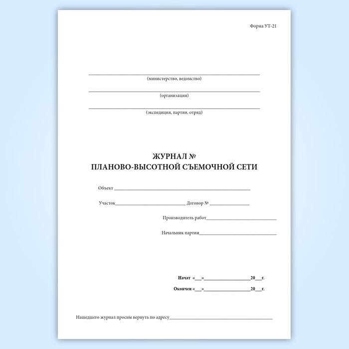 Журнал планово-высотной съемочной сети (форма УТ-21) в Альметьевске купить