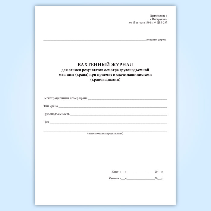 Вахтенный журнал для записи результатов осмотра грузоподъемной машины (крана) при приемке и сдаче машинистами (крановщиками) в Альметьевске купить