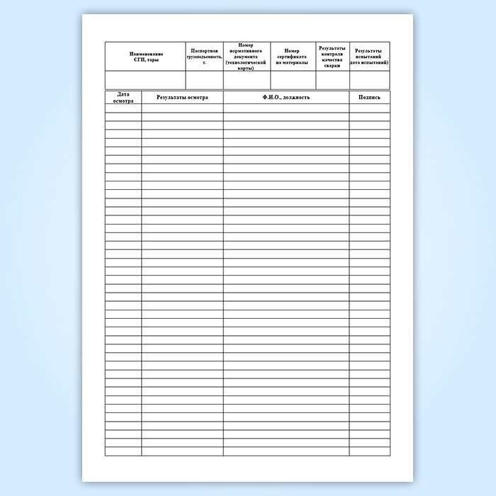 Журнал учета и осмотра съёмных грузозахватных приспособлений и тары (ремонтно-механическая мастерская) в Альметьевске купить