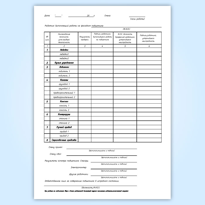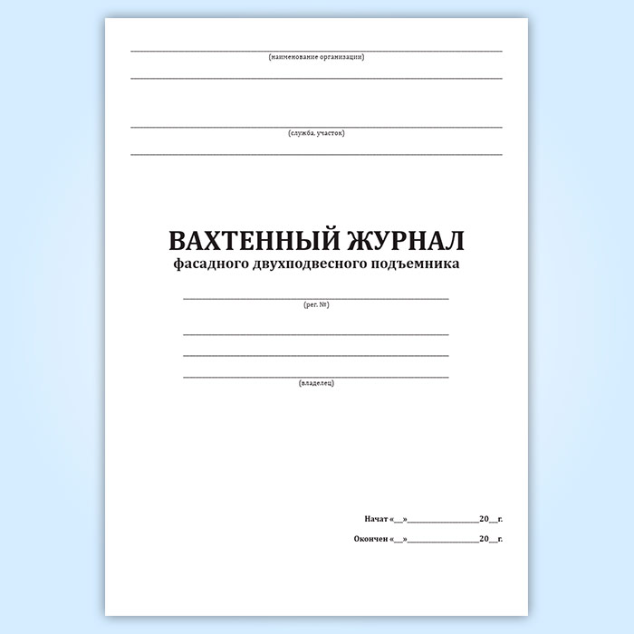 Вахтенный журнал фасадного двухподвесного подъемника в Альметьевске купить