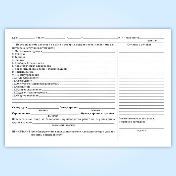 Вахтенный журнал г/п крана в Альметьевске купить