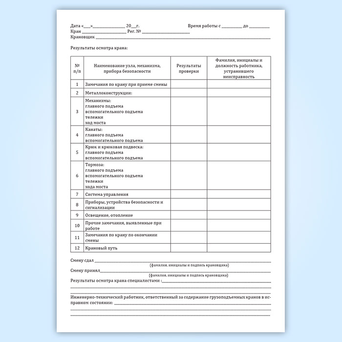 Вахтенный журнал машиниста мостового крана в Альметьевске купить