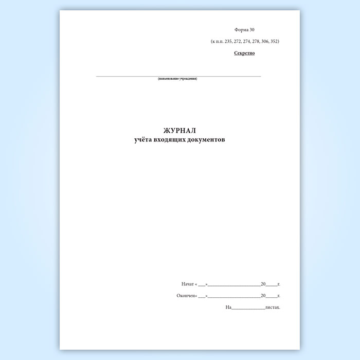 Журнал учета входящих документов (форма № 30) в Альметьевске купить