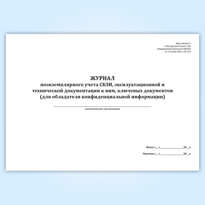 Журнал поэкземплярного учета СКЗИ, эксплуатационной и технической документации к ним, ключевых документов (для обладателя конфиденциальной информации) в Альметьевске купить