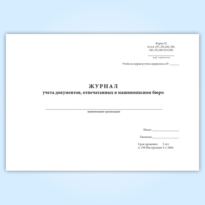 Журнал учета документов, отпечатанных в машинописном бюро (форма 32) в Альметьевске купить
