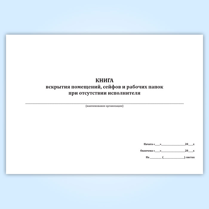 Книга вскрытия помещений, сейфов и рабочих папок при отсутствии исполнителя в Альметьевске купить