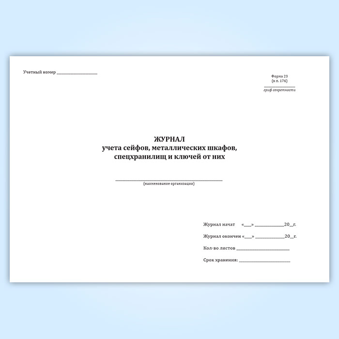 Журнал учета сейфов, металлических шкафов, спецхранилищ и ключей от них в Альметьевске купить