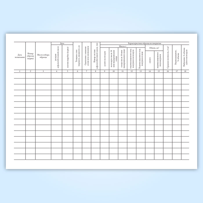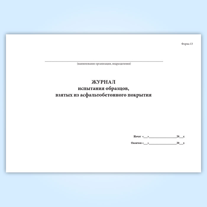 Журнал испытания образцов, взятых из асфальтобетонного покрытия (форма 13) в Альметьевске купить