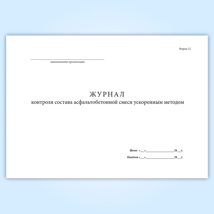 Журнал контроля состава асфальтобетонной смеси ускоренным методом (форма 12) в Альметьевске купить
