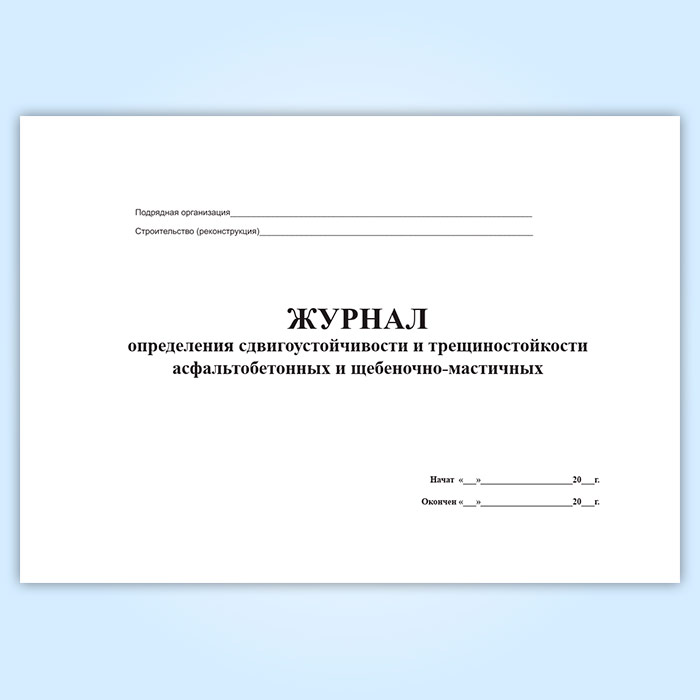 Журнал определения сдвигоустойчивости и трещиностойкости асфальтобетонных и щебеночно-мастичных покрытий в Альметьевске купить