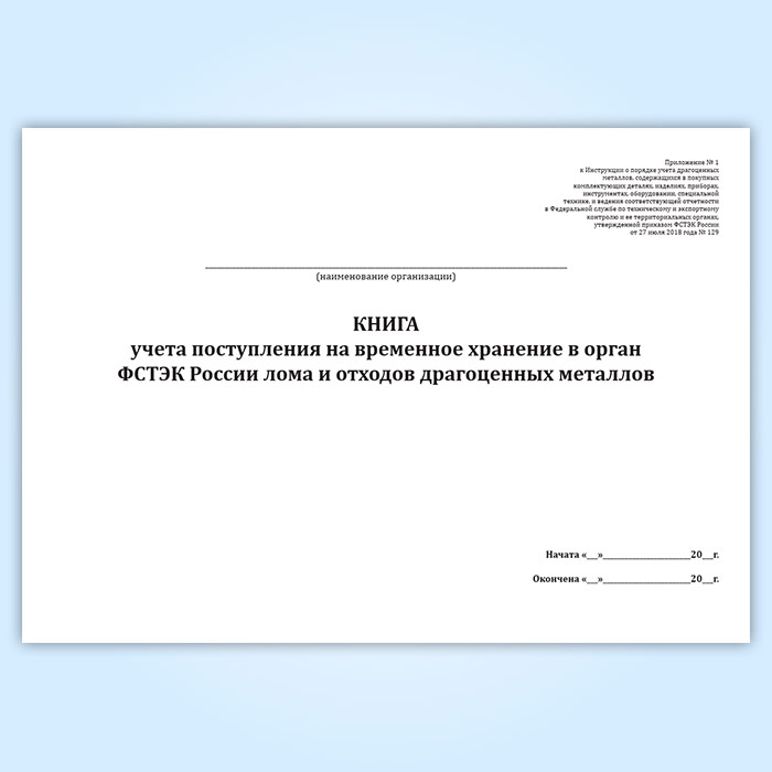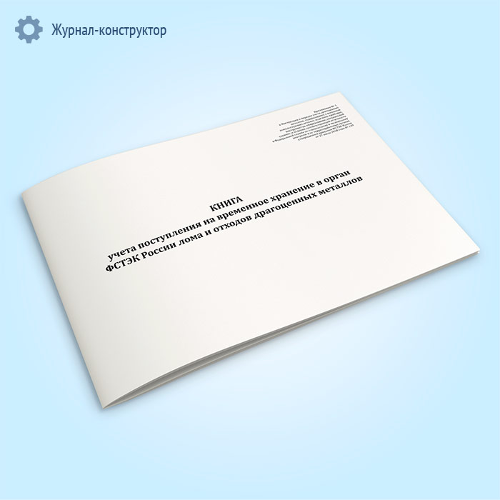 Книга учета поступления на временное хранение в орган ФСТЭК России лома и отходов драгоценных металлов в Альметьевске купить