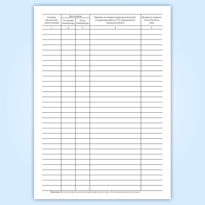 Журнал по эксплуатации и техническому обслуживанию систем вентиляции в Альметьевске купить