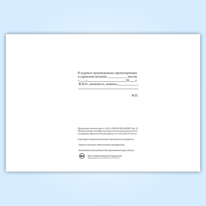 Вы получаете печатную продукцию прошнурованной и c местом для вашей печати в соответствии с действующими нормативными документами: