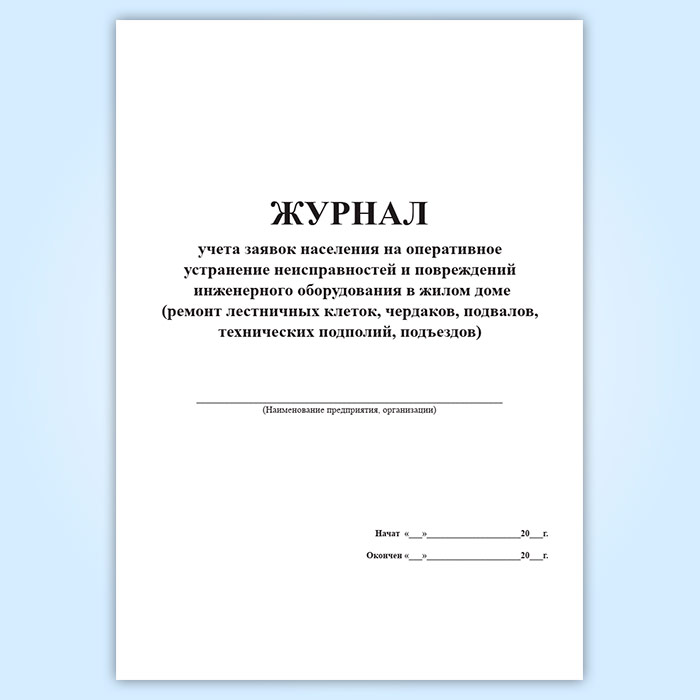 Журнал учета заявок населения на оперативное устранение неисправностей и повреждений инженерного оборудования в жилом доме ремонт лестничных клеток, чердаков, подвалов, технических подполий, подъездов в Альметьевске купить