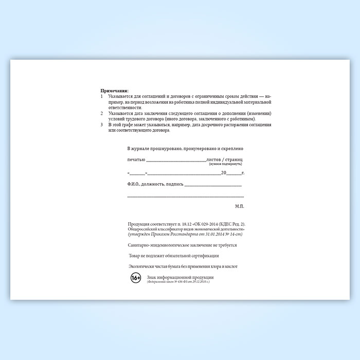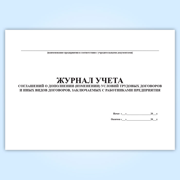 Журнал учета соглашений о дополнении (изменении) условий трудовых договоров и иных видов договоров, заключаемых с работниками предприятия в Альметьевске купить