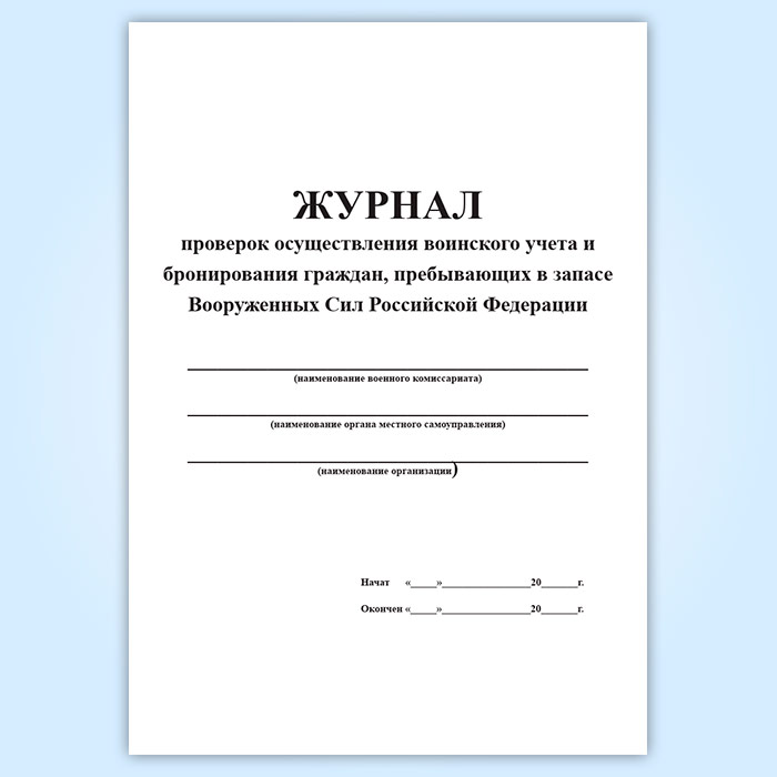 Журнал проверок осуществления воинского учета и бронирования граждан, пребывающих в запасе Вооруженных Сил Российской Федерации в Альметьевске купить