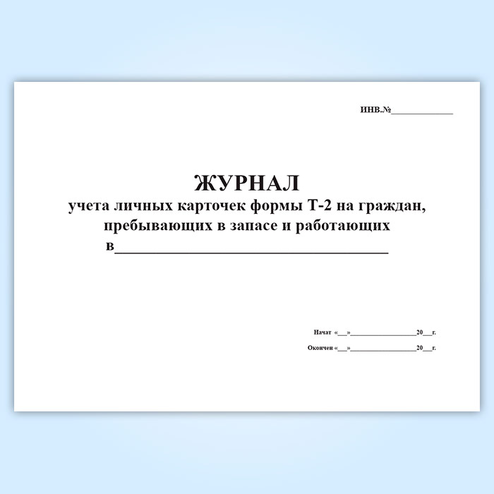 Журнал учета личных карточек формы Т-2 на граждан, пребывающих в запасе и работающих в Альметьевске купить