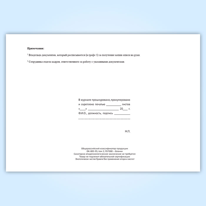 Вы получаете печатную продукцию прошнурованной и c местом для вашей печати в соответствии с действующими нормативными документами: