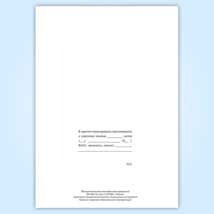 Вы получаете печатную продукцию прошнурованной и c местом для вашей печати в соответствии с действующими нормативными документами: