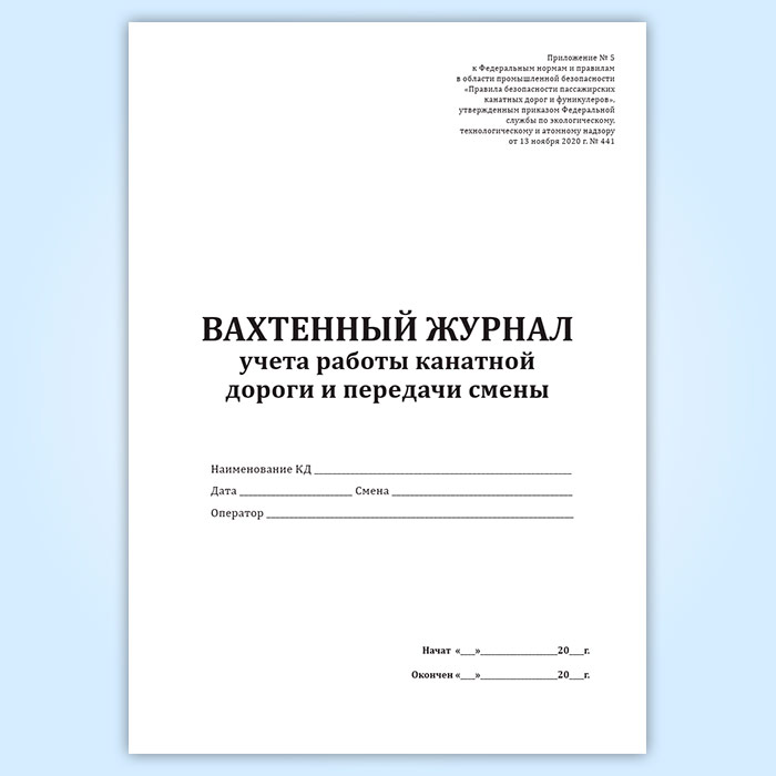 Вахтенный журнал учета работы канатной дороги и передачи смены в Альметьевске купить