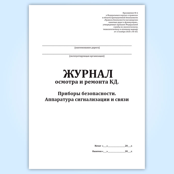 Журнал осмотра и ремонта канатной дороги. Приборы безопасности. Аппаратура сигнализации и связи (форма № 9) в Альметьевске купить