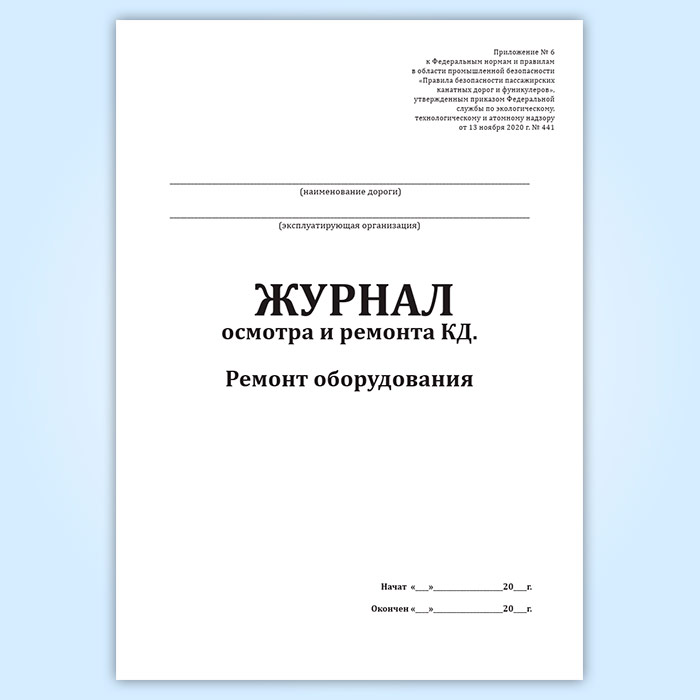 Журнал осмотра и ремонта канатной дороги. Ремонт оборудования (форма № 10) в Альметьевске купить