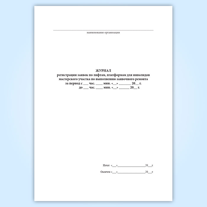 Журнал регистрации заявок по лифтам, платформам для инвалидов мастерского участка по выполнению заявочного ремонта в Альметьевске купить