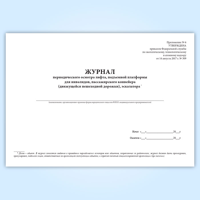 Журнал периодического осмотра лифта, подъемной платформы для инвалидов, пассажирского конвейера (движущейся пешеходной дорожки), эскалатора в Альметьевске купить