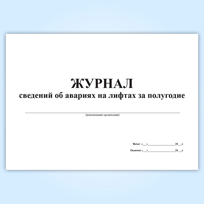 Журнал сведений об авариях на лифтах за полугодие в Альметьевске купить