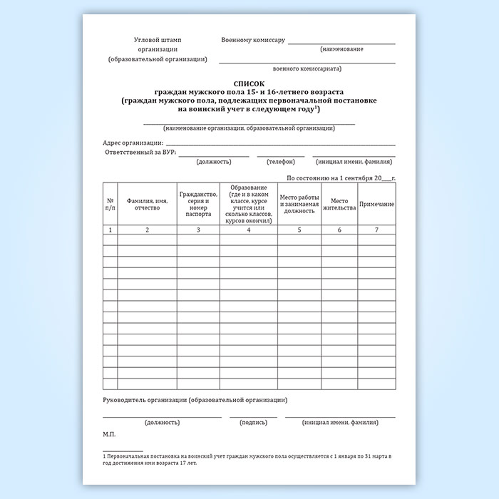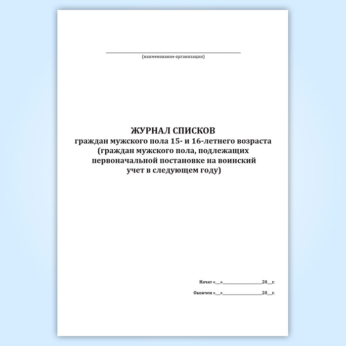 Журнал списков граждан мужского пола 15- и 16-летнего возраста (граждан мужского пола, подлежащих первоначальной постановке на воинский учет в следующем году) в Альметьевске купить
