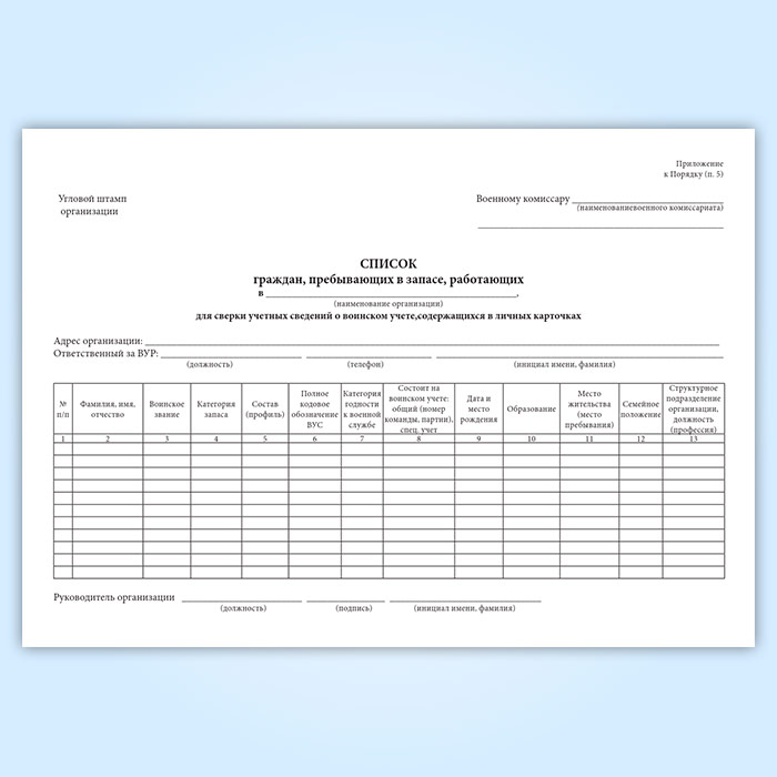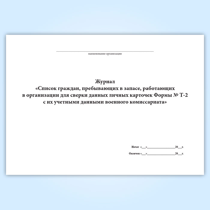 Журнал «Список граждан, пребывающих в запасе, работающих в организации для сверки данных личных карточек Формы № Т-2 с их учетными данными военного комиссариата» в Альметьевске купить
