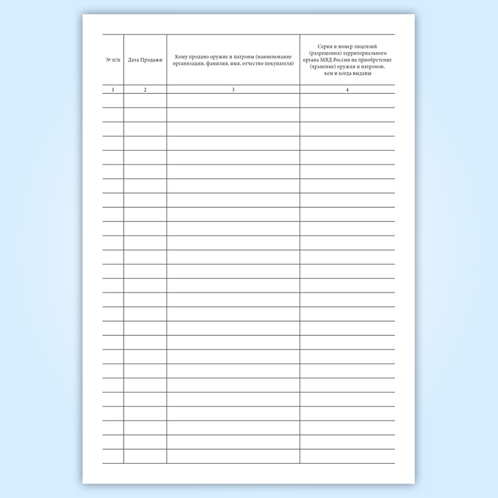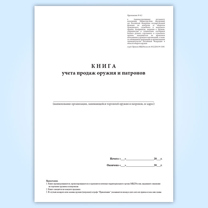 Книга учета продаж оружия и патронов (Приказ МВД России от 29.06.2012 N 646) в Альметьевске купить