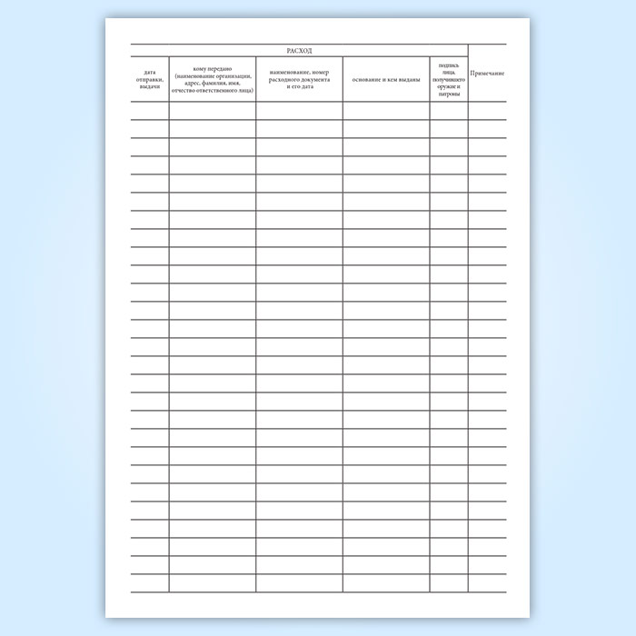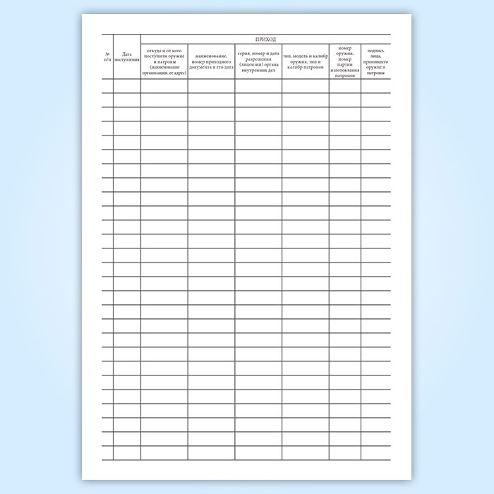 Книга учета наличия и движения поступающего, хранящегося и выдаваемого (проданного) оружия и патронов в Альметьевске купить