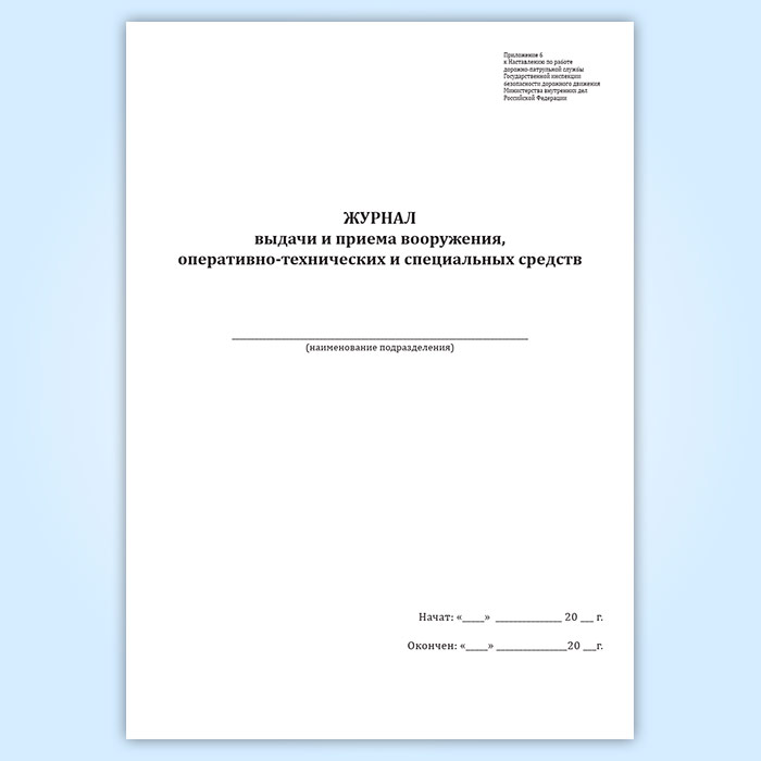 Журнал выдачи и приема вооружения, оперативно-технических и специальных средств в Альметьевске купить