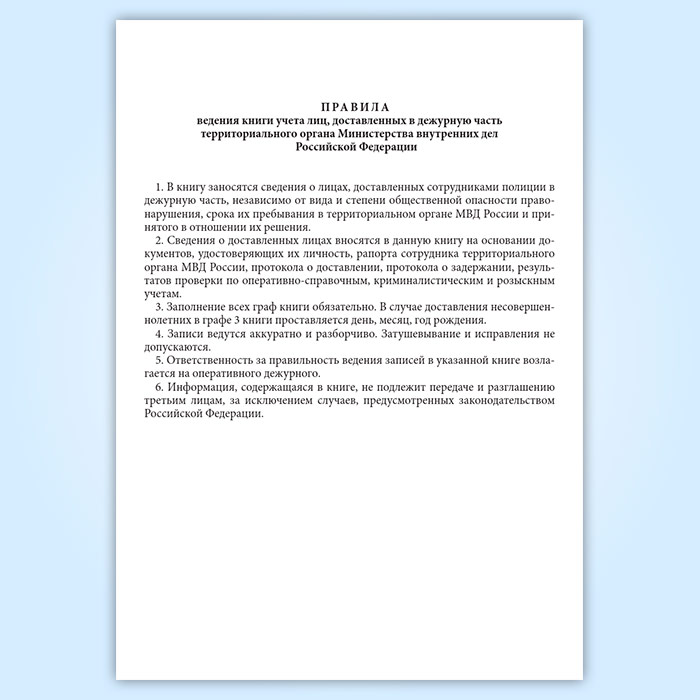 Книга учета лиц, доставленных в дежурную часть территориального органа МВД РФ в Альметьевске купить
