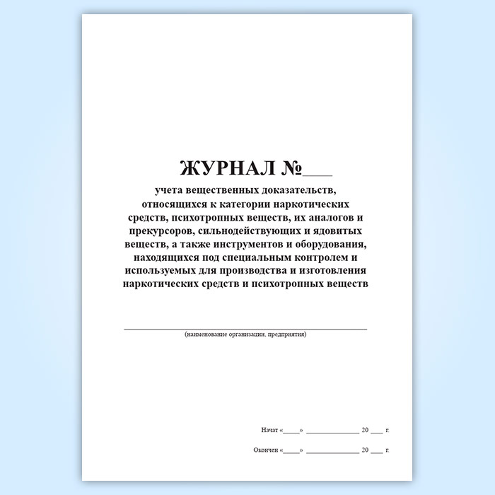 Журнал учета вещественных доказательств, относящихся к категории наркотических средств, психотропных веществ, их аналогов и прекурсоров, сильнодействующих и ядовитых веществ, а также инструментов и оборудования, находящихся под специальным контролем и используемых для производства и изготовления наркотических средств и психотропных веществ в Альметьевске купить