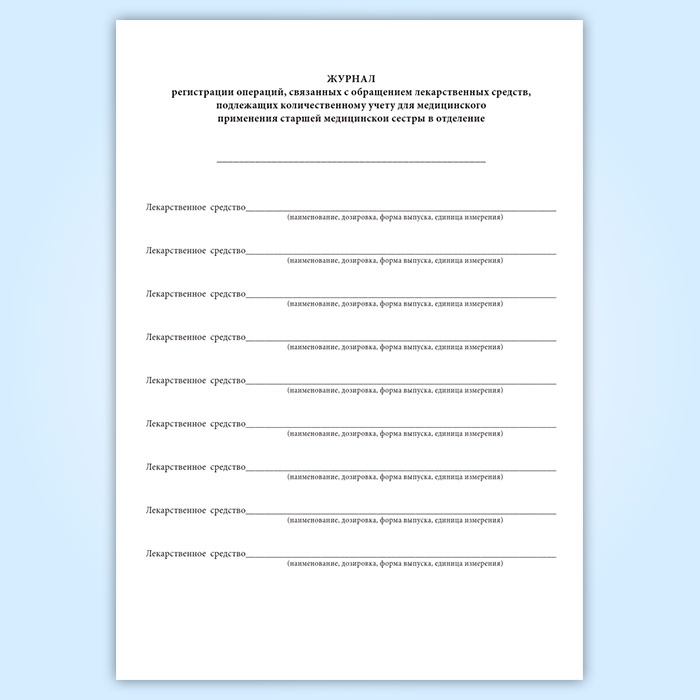 Журнал регистрации операций, связанных с обращением лекарственных средств, подлежащих количественному учету для медицинского применения старшей медицинской сестры в отделение в Альметьевске купить