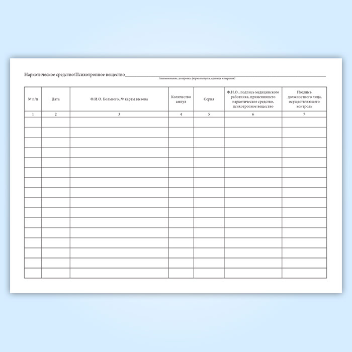 Журнал регистрации операций, связанных с оборотом наркотических средств и психотропных веществ, старшего по бригаде медицинского работника в Альметьевске купить