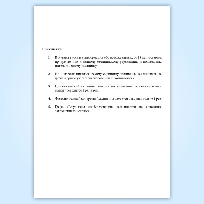 Журнал учета цитологического скрининга женщин по выявлению патологии шейки матки в Альметьевске купить