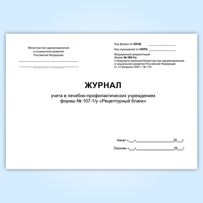 Журнал учета в лечебно-профилактических учреждениях рецептурных бланков формы № 107-1/у (форма № 306-1/у) в Альметьевске купить