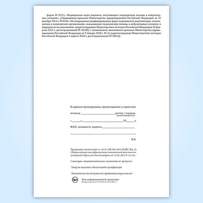 Вы получаете печатную продукцию прошнурованной и c местом для вашей печати в соответствии с действующими нормативными документами: