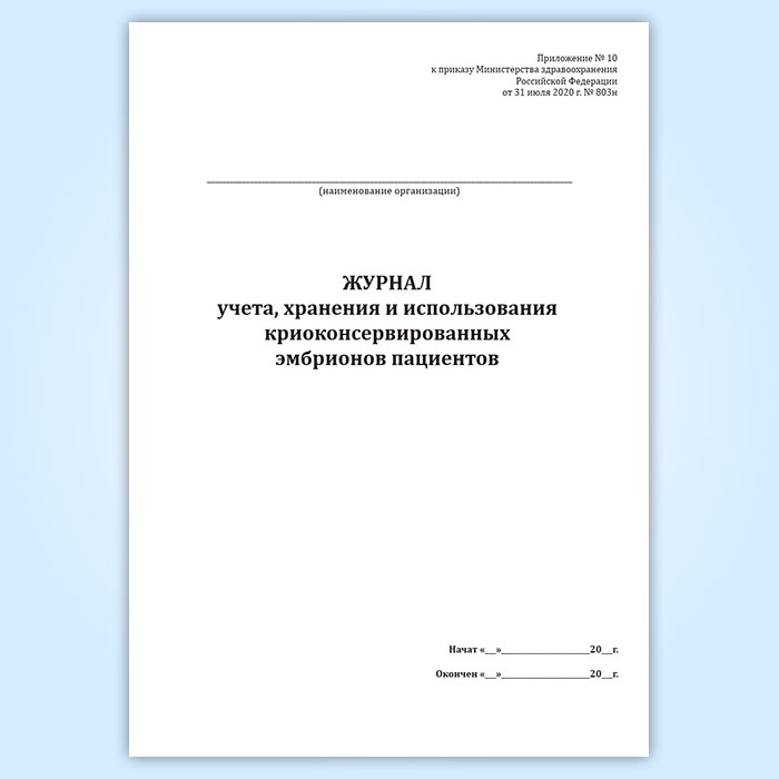 Журнал учета, хранения и использования криоконсервированных эмбрионов пациентов в Альметьевске купить