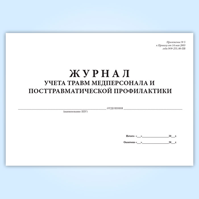 Журнал учета травм медперсонала и посттравматической профилактики в Альметьевске купить