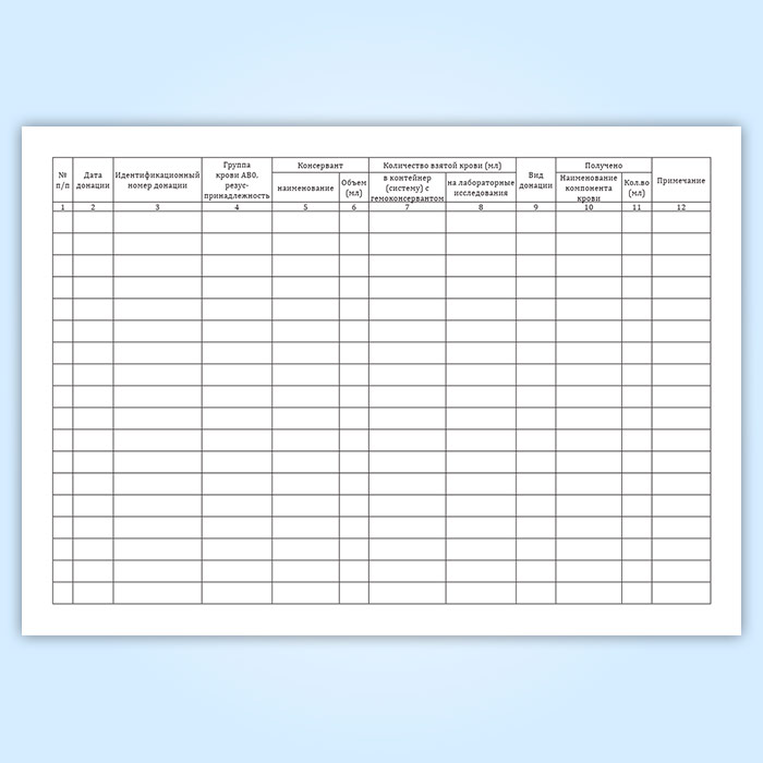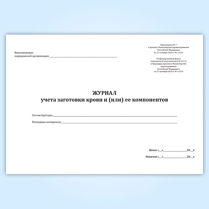 Журнал учета заготовки крови и (или) ее компонентов (форма № 411/у) в Альметьевске купить