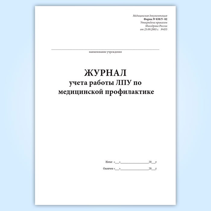 Журнал учета работы ЛПУ по медицинской профилактике (форма 038у-02) в Альметьевске купить