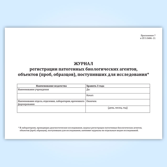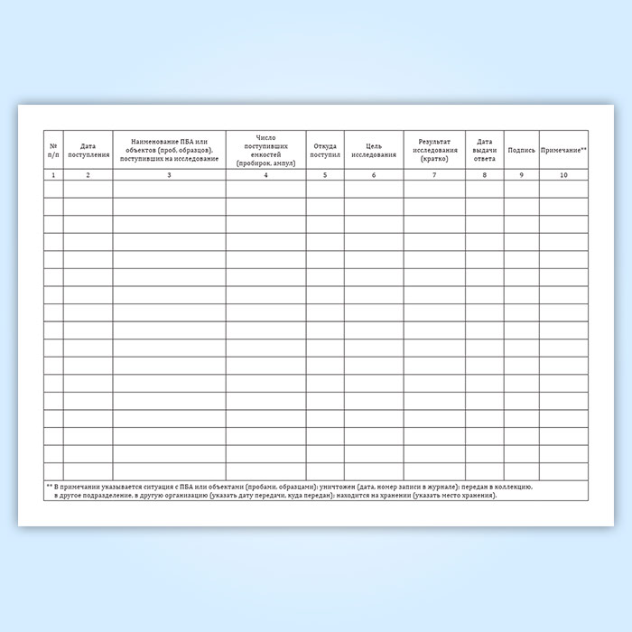 Журнал регистрации патогенных биологических агентов, объектов (проб, образцов), поступивших для исследования в Альметьевске купить