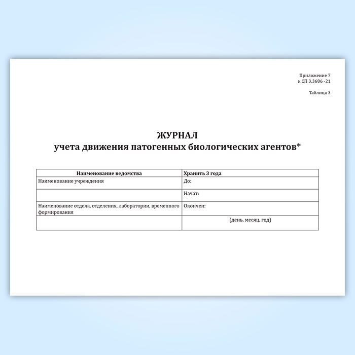 Журнал учета движения патогенных биологических агентов (СанПиН 3.3686-21) в Альметьевске купить