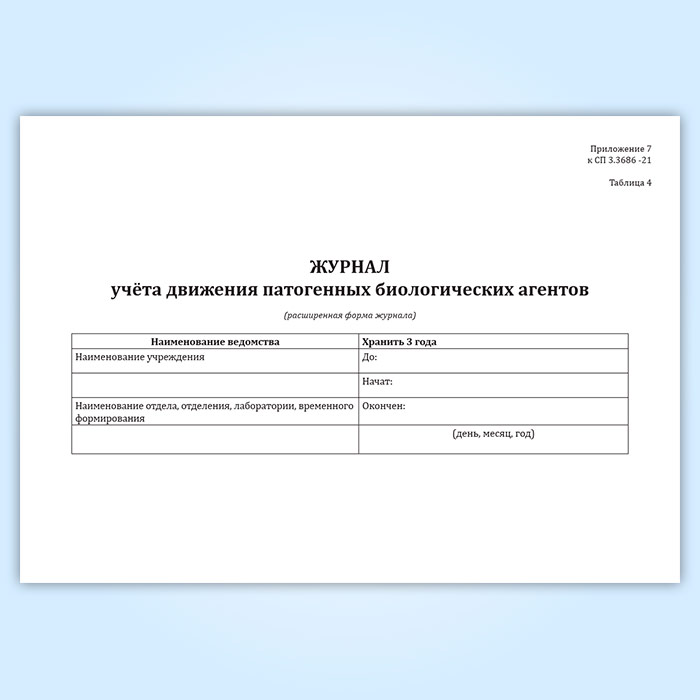 Журнал учета движения патогенных биологических агентов (СанПиН 3.3686-21, расширенная форма) в Альметьевске купить